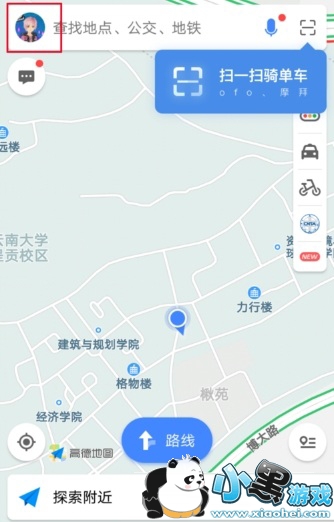 我们进入高德地图的主页之后,点击上方自己的头像。