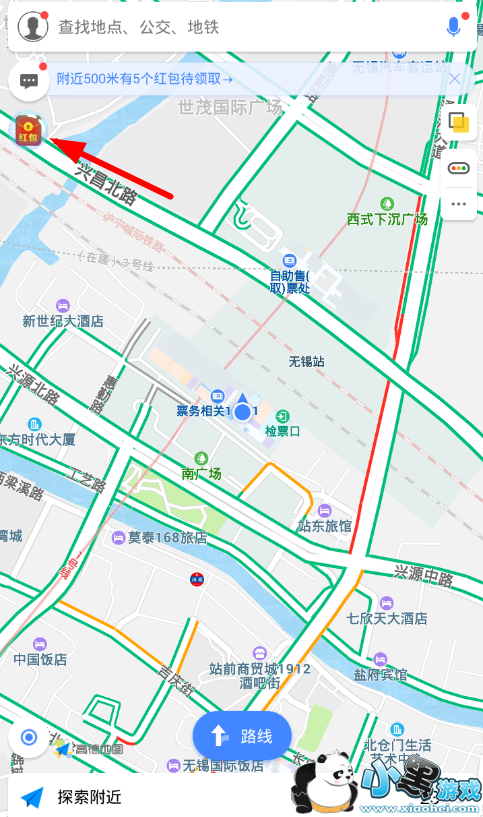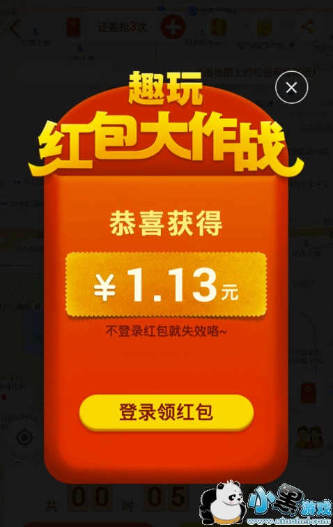 2、用户可以抢红包的次数有限,但是可以通过任务来进行补充,接下来找到地图上的红包点击进去,就可以狂按按钮进行抢夺了。