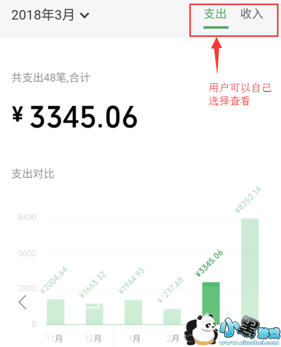 第三步:进入月账单之后,可以选择月份来查看收支情况。