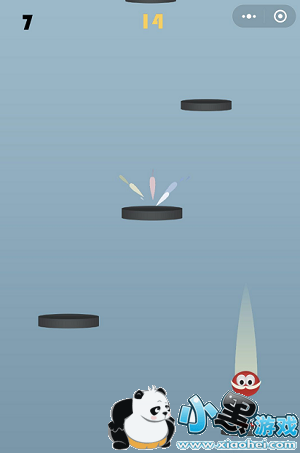 3.如果想要获得高分,我们不可以错过有水花的板子,这样的板子是会变大的,可以防止我们落下~