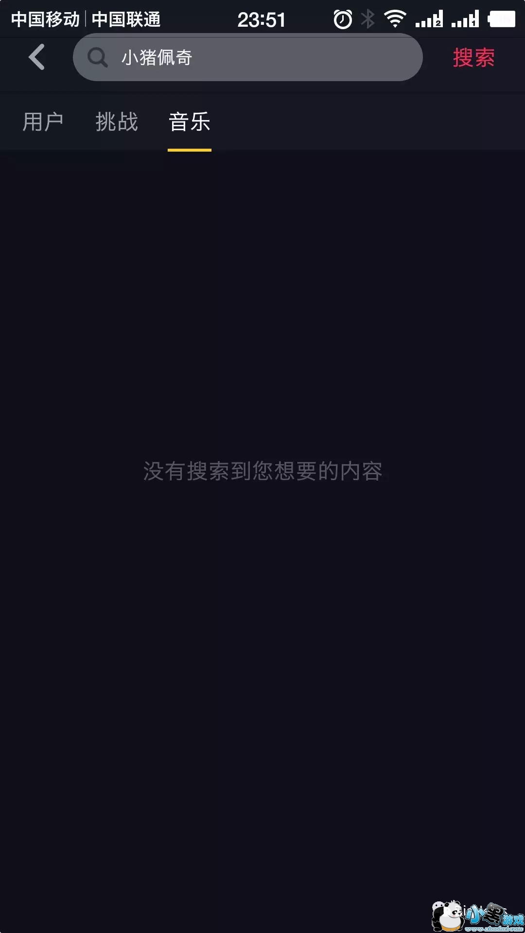 在抖音上搜索“小猪佩奇”,“用户”“音乐”栏目下,确实不显示相关内容。