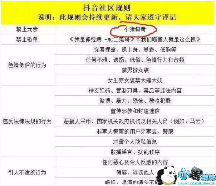 在昨天稍早的时候,抖音公布了新的社区规定,公布了一系列被禁的内容,小猪佩奇赫然在列: