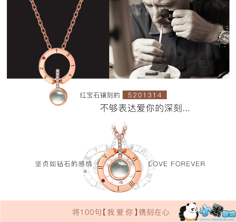 通过与专利纳米微雕技术结合,将100句【我爱你】雕刻在吊坠中