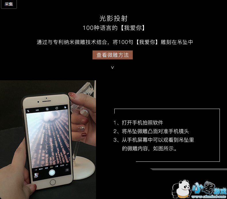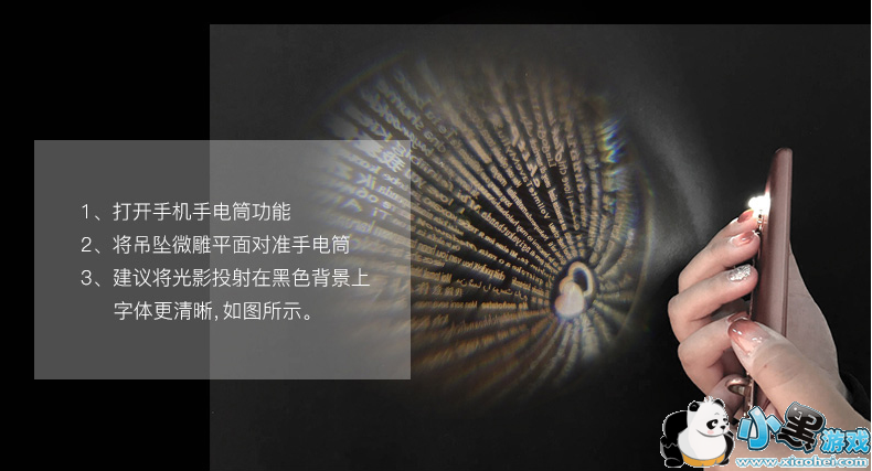 3、从手机屏幕中可以观看到吊坠里面的微雕内容