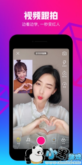 在你录制视频的时候,可以直接使用该视频的原音乐,还会提供一个小窗口,让你方便模仿原视频的动作进行拍摄,降低了视频拍摄难度。