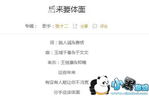 《后来要体面》——张十二,其实这个歌就是一小段,只有15秒