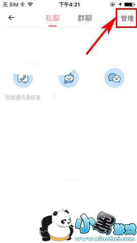 2)接着点击界面右上方的【管理】,最后再关闭【接收陌生人打招呼】按钮便可。(如下图)