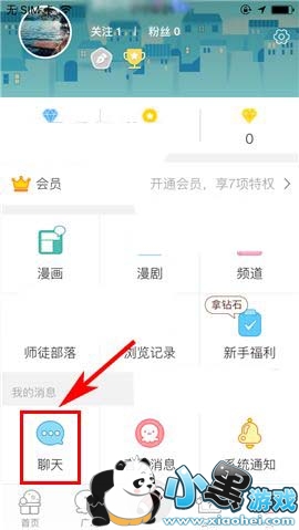 1)点开触漫APP,首先进入首页右下角的【我】,然后上划界面点击【聊天】;(如下图)