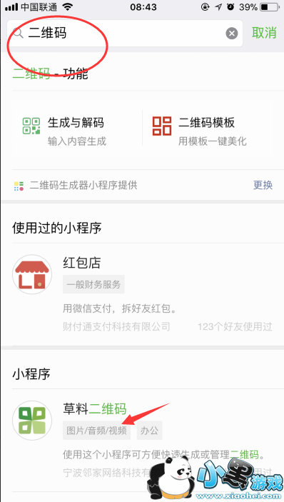 2、搜索二维码关键词,点击进入你最感兴趣的二维码生成器小程序;
