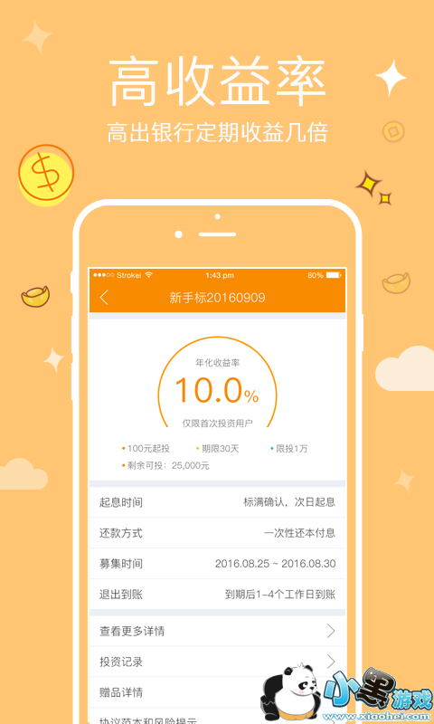 【高收益】产品为投资者争取高收益的保障,产品的理财收益率高出银行定期收益率几倍以上。