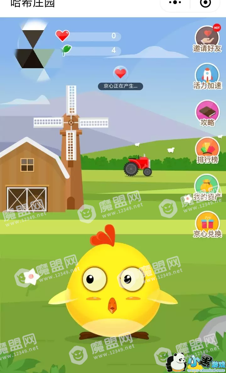 点开之后,发现是一款养成类游戏,类似支付宝里面的蚂蚁庄园,小鸡产蛋,产出的蛋名为“京心”,“京心”就是京东区块链上的TOKEN。