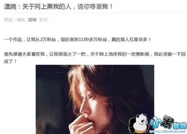 面对这些丑闻,名为“温婉”的微信公众号却发文《关于网上黑我的人,请你尊重我!》