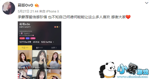 并且莉哥o3o发微博表示感谢:承蒙厚爱倍感珍惜 也不知自己何德何能能让这么多人喜欢。