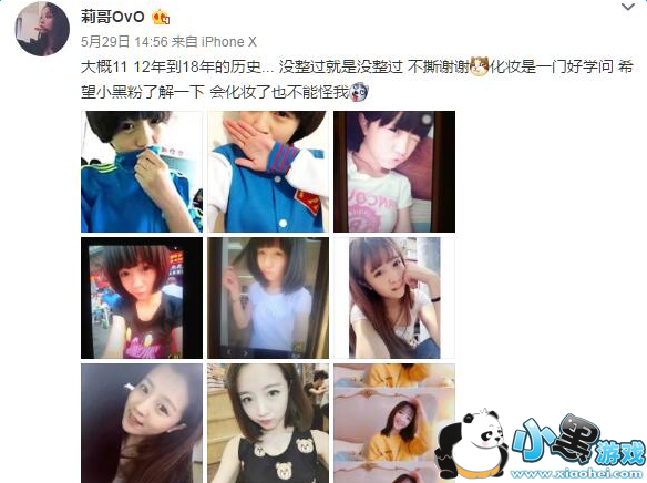 5月29日莉哥ovo微博发布微博回应整容,并且上了九张旧照到现在的照片回应各位粉丝。