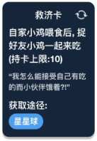 在蚂蚁庄园道具中的救济卡开通解锁了,救济卡可以在自家小鸡为食后,捉好友的小鸡一起来吃,持卡上限为10张,通过玩星星球可以获取救济卡。
