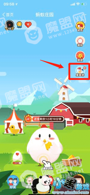 点击以下界面中的【星星球】按钮,进入星星球小游戏。