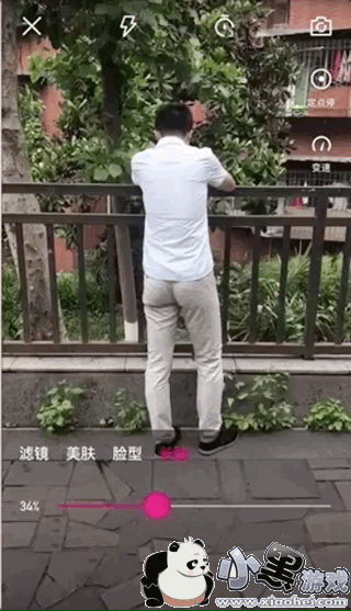 打开微视的拍摄按钮后,点击滤镜就能看到“长腿”效果,可以拖动下方的条形来选择不同程度的效果。下面的gif图是微视的效果。