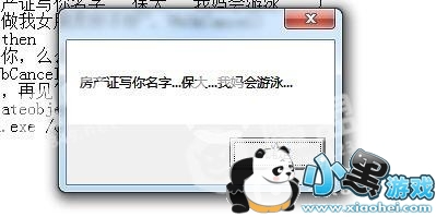 msgbox("房产证写你名字...保大...我妈会游泳...")