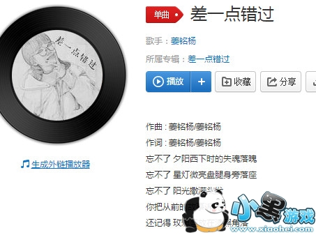 这首歌的歌名叫《差一点错过》,歌手姜铭杨。