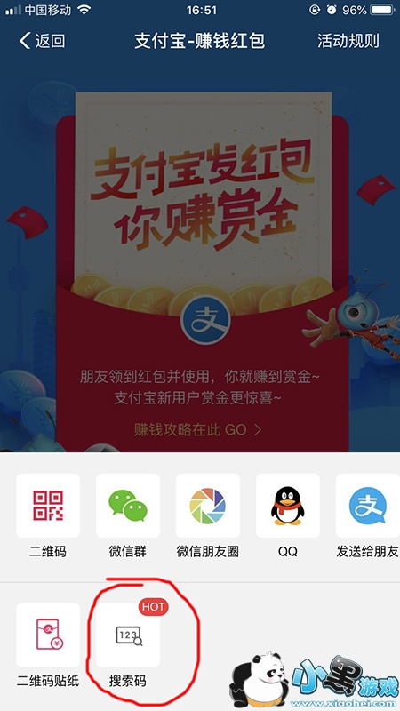 这就是快速生成自己支付宝搜索码的方法,以上就是小黑市场为大家带来的相关内容,如果你不知道如何使用的话可以参考《支付宝红包使用规则》。
