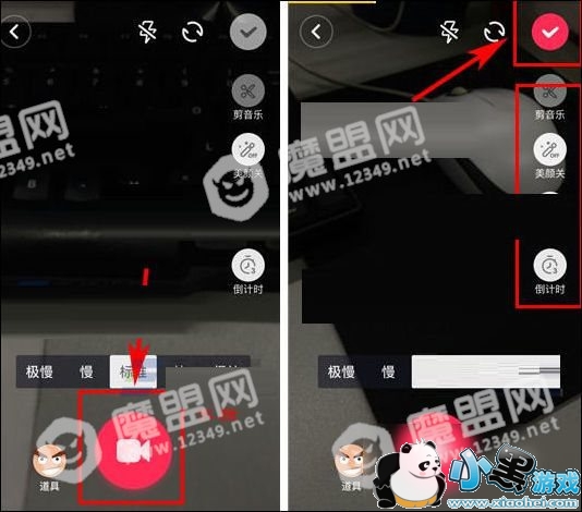 3、接着【长按】圆形按钮进行录制,至结束录制时松开按钮即可,然后对视频进行编辑或继续录制,完成后点击界面右上角处的“对勾”符号;(如下图)