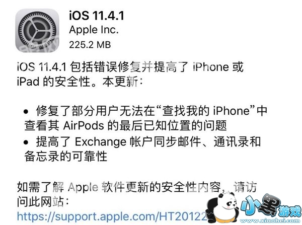 iOS 11.4.1更新的公告中,苹果强调,修复了部分用户无法在“查找我的 iPhone”中查看其AirPods的最后已知位置的问题,并提高了Exchange账户同步邮件、通讯录和备忘录的可靠性。