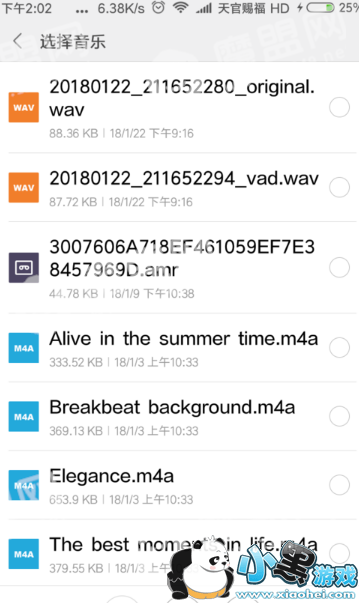 然后在自己的手机本地找到音乐所保存的文件夹,这个时候音频文件就自动跳出来了。