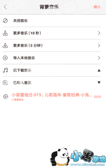 选择导入本地音乐命令,其他的就是系统提供的一些东西,大家可以尝试一下不同的配乐风格。