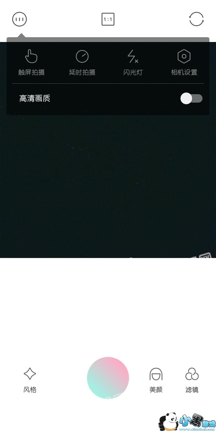 5、点击左上角的图标,可以设置触屏拍摄、延时拍摄、闪光灯等。