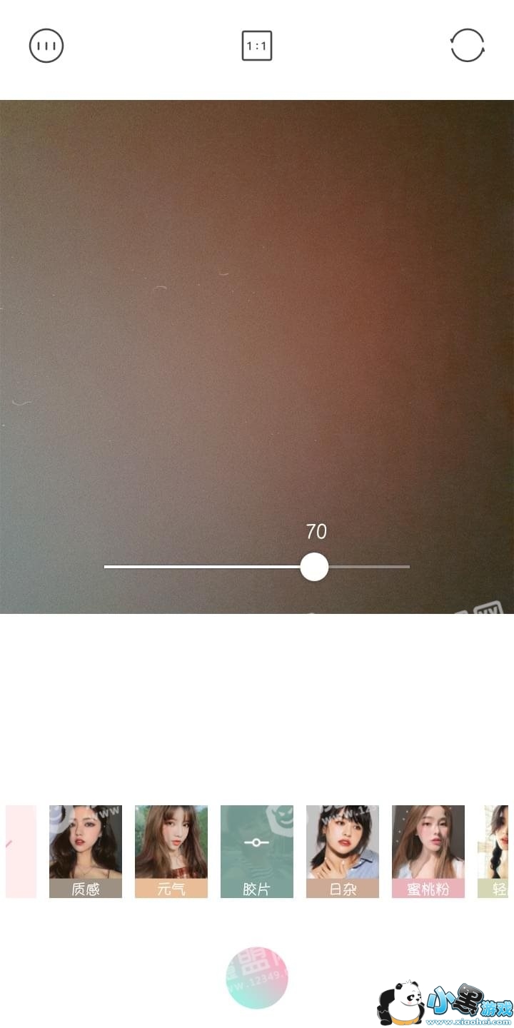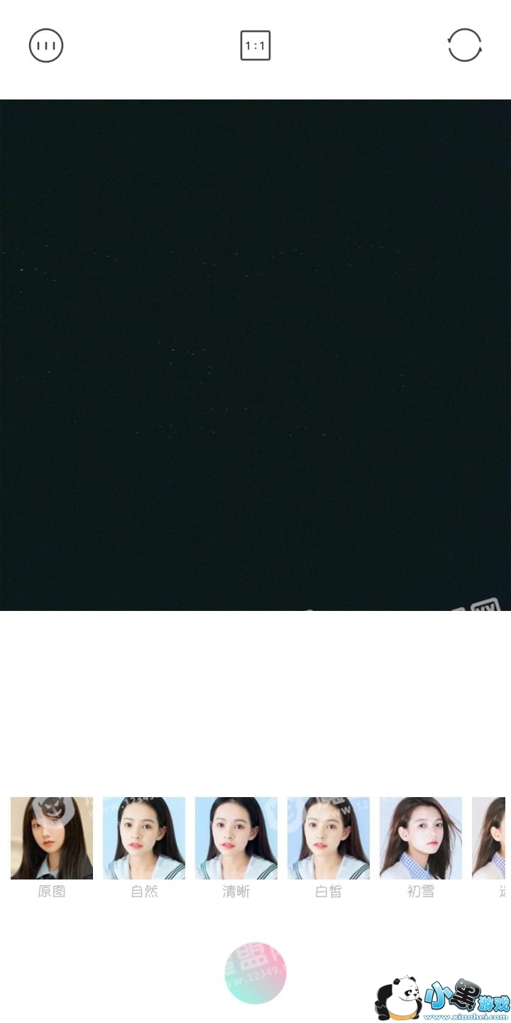 1、首先打开轻颜相机,进入之后会看到如下图所示的画面,首先展示风格、美颜、滤镜,最上面的中间位置可以调整相比比例大小。