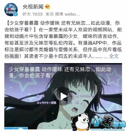本月20号,央视曾点名批评B站含有内容低俗的动漫作品,央视表示,在B站的热播的一些动漫作品中存在穿着暴露的少女,暧昧的语言和动作,甚至涉及“兄妹恋”等乱伦内容。