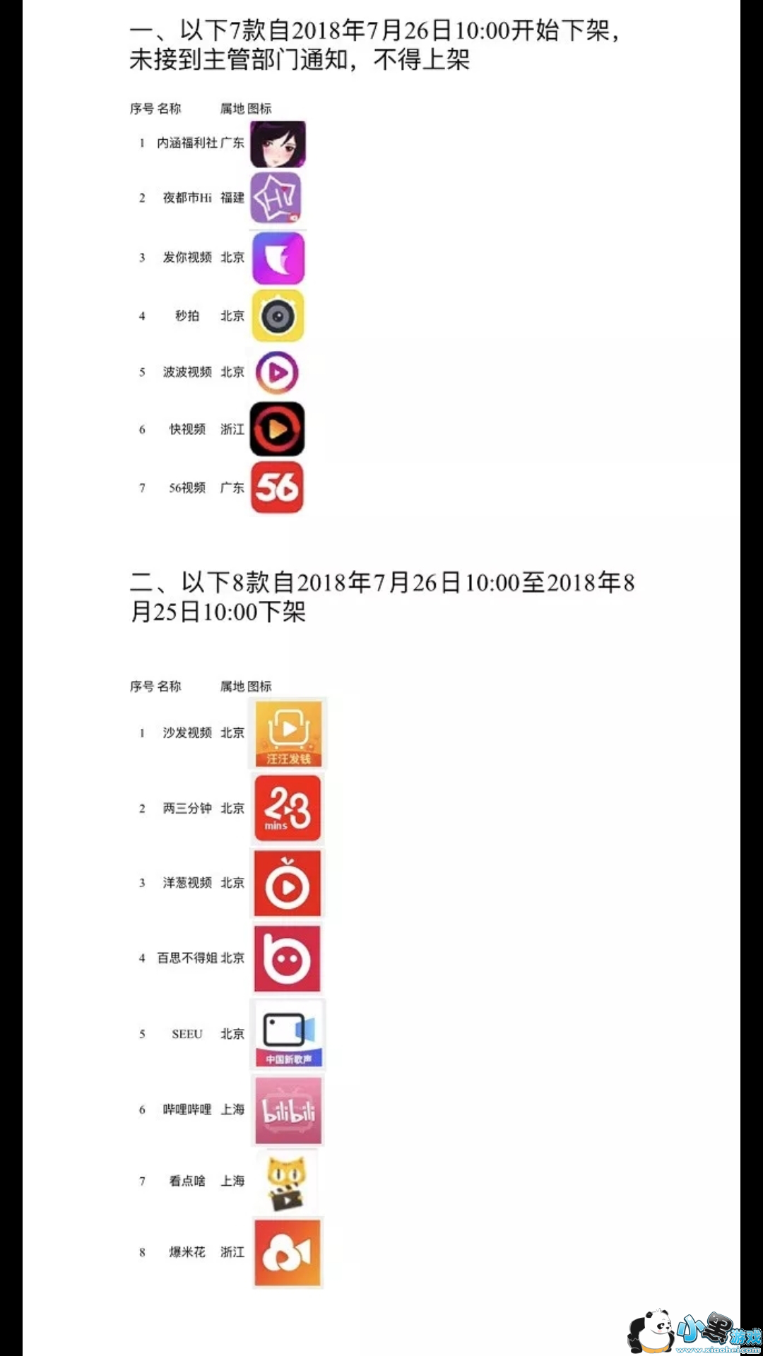 一、以下7款应用自2018年7月26日10:00开始下架,未接到主管部门通知,不得上架。