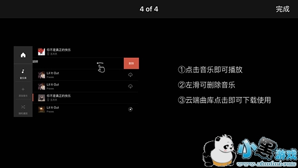 3、点击音乐即可播放,然后不想要的音乐可以左滑删除,云端曲库点击即可下载使用。