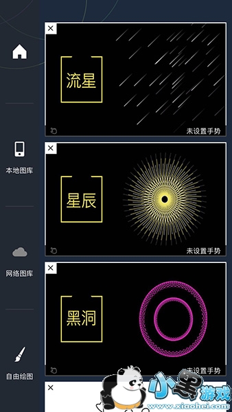 3. 图库设置,图库中有炫目的流星雨与可爱的小猪等各类图案,导入即可呈现出来哦。