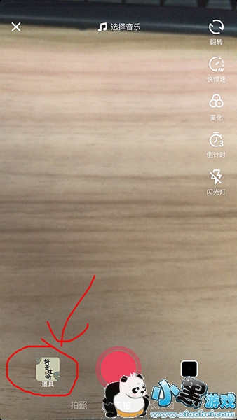 1、打开抖音拍摄之后,在最下方会有个道具提示,点击打开