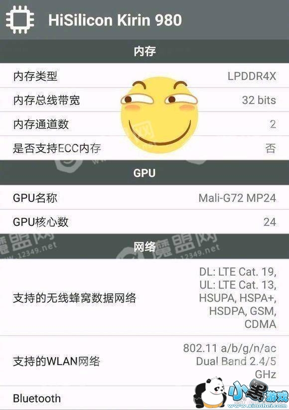 麒麟980的参数图在网络上曝光。根据曝光的图片显示,麒麟980采用7nm工艺,四核Cortex-A77+四核Cortex A55构成的八核心设计,最高频率达2.8GHz,整合Mali-G72 MP24,摄像头最高支持3 ISP图形处理器,屏幕分辨率可达4K级,并支持蓝牙5.0。