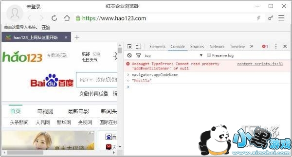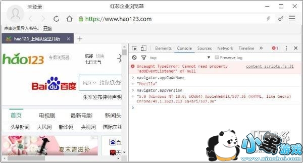 然而,这真的是自主研发的浏览器内核吗?一试便知!抱着试一试的心态,笔者将红芯浏览器下载下来试用一下,好家伙,安装时连安装位置都不给我选择的机会,直接就安装在C盘里面了。打开浏览器,笔者按照查看谷歌浏览器内核的方式随便开了一个网页之后打开开发者工具,在console下输入navigator.appCodeName回车后返回的信息居然有国外浏览器的产品代号:Mozilla。