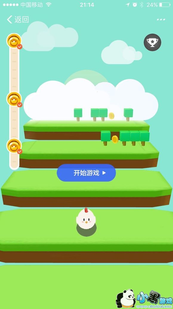 登山游戏呢,其实很简答,是根据我们滑动屏幕,让小鸡躲避障碍物,吃到金币来算分数的。