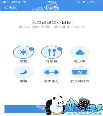 点击进入“小目标”后,上滑“箭头”图标,并选择设定的小目标,点击【开始行动】
