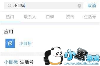 第一次使用支付宝小目标的伙伴们,在支付宝中是不能直接找到小目标程序的,需要在搜索框中搜索“小目标”,如下图第一个就是了:
