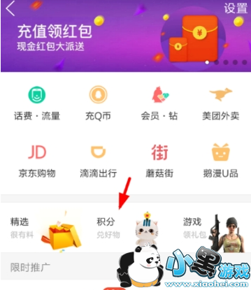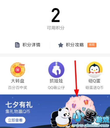 2、接下来在QQ钱包的页面里选择“积分”功能,大家就能够进入QQ积分商城页面,从而找到集礼物,赢Q币的活动横幅了。