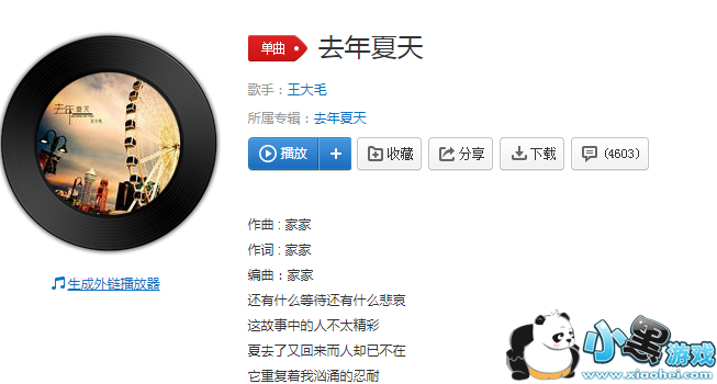 歌名:《去年夏天》