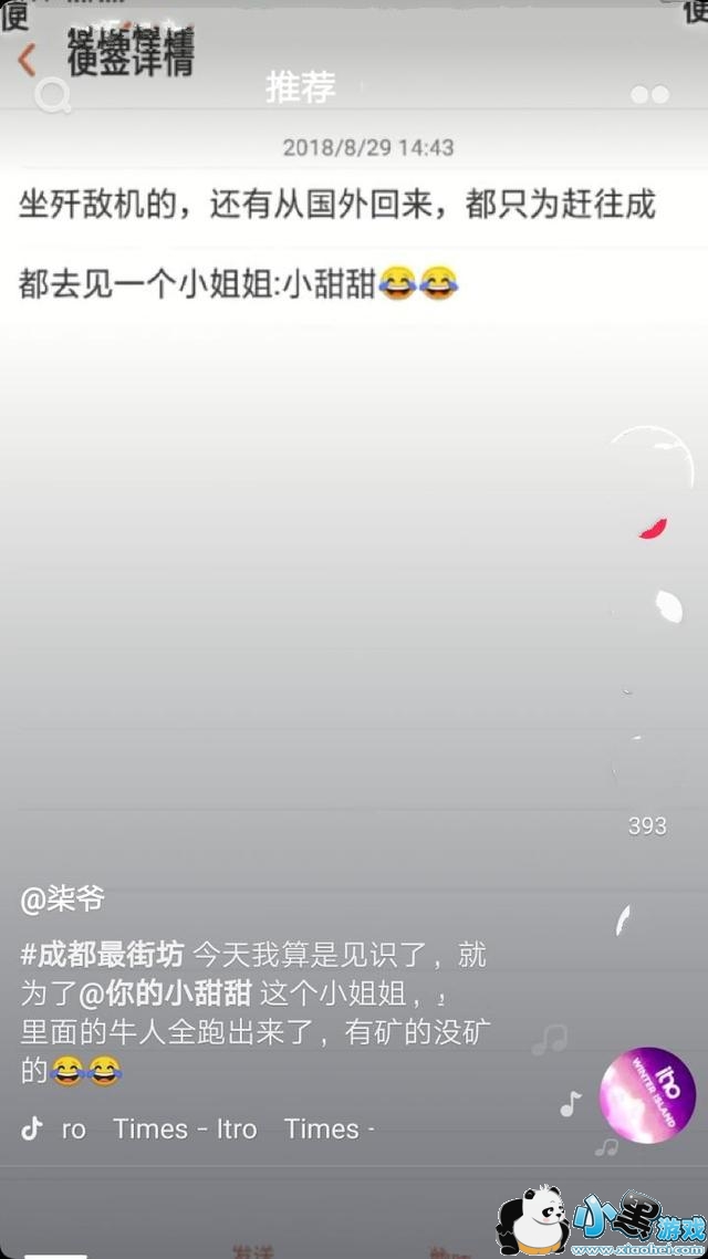 成都最近又火了,而这一次,仅仅是因为小甜甜小姐姐的一句话。相信玩抖音的大家最近都发现,不少人都踏上了去成都的路,各种交通工具应有尽有。究竟去成都是什么梗,而小天天又是怎么火的呢?下面小编带大家一起一探究竟。