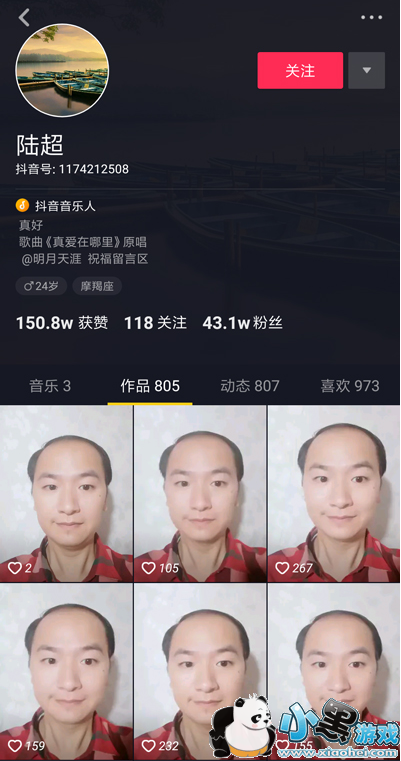 那么在抖音中陆超的个人认证今年只有24岁,是一名抖音的音乐人,目前已经拥有40多万的粉丝。并且发了800多个视频,每一个视频都是一个模样,一件衣服,以及他经典的“真好”台词。因为在每一个视频最后陆超都会加上“真好”二字,所以很多人都称他为“真好哥”。
