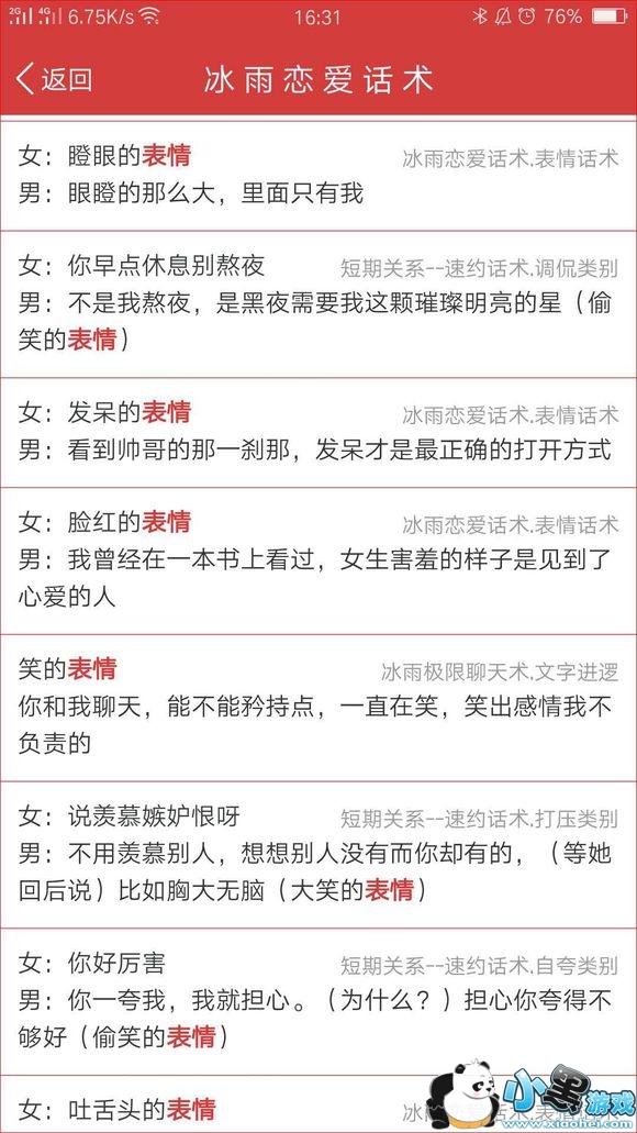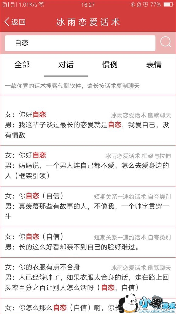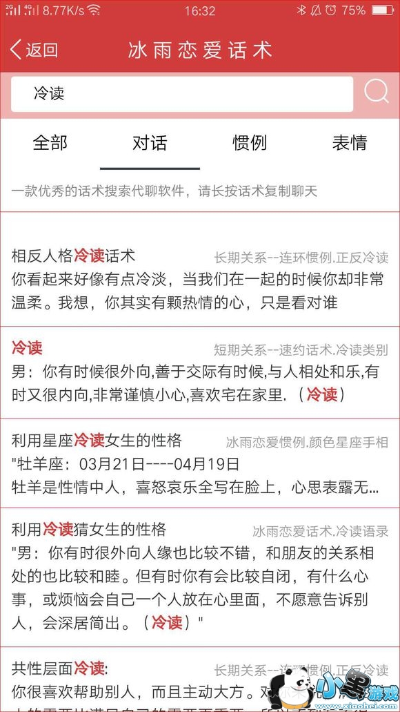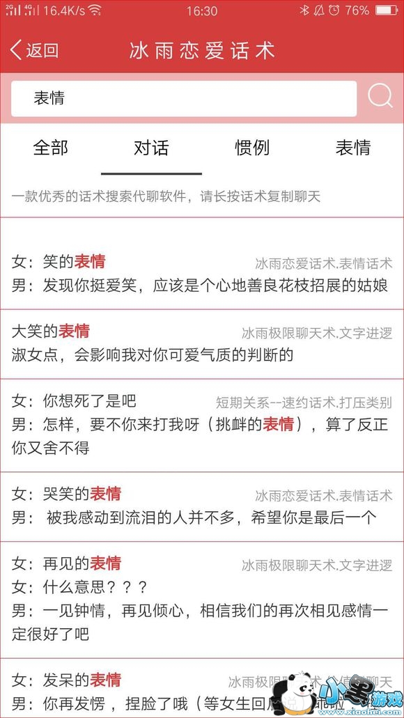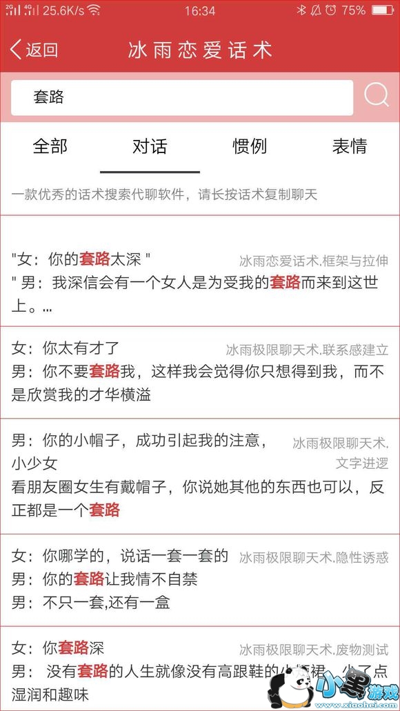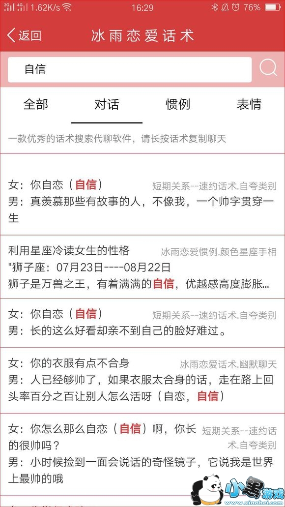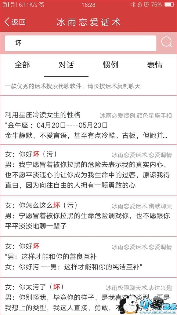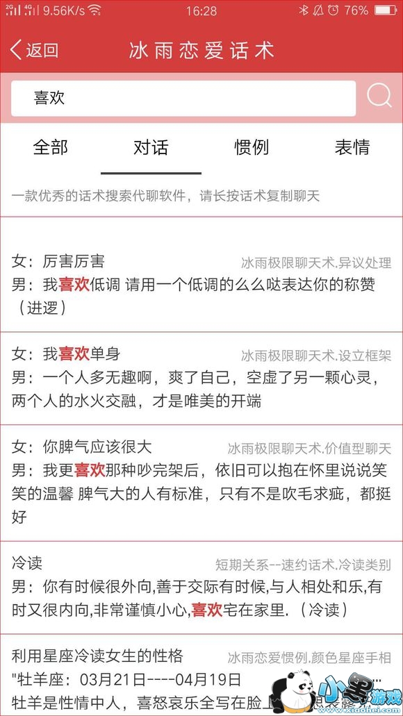 恋爱话术不用记,如果追女生没有话题以及遇到不懂的聊天,只需搜一搜话术就可复制回答轻松搞定!!!