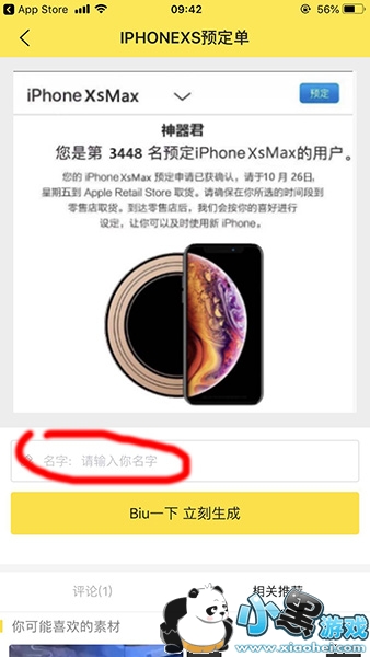 3、点击进入图片生成器中然后输入自己的姓名,如上图红色方框的位置。