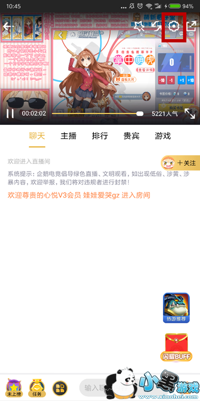 然后点击直播界面右上角的【设置】按钮