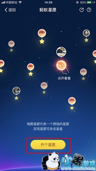 2、进入蚂蚁星愿小程序之后,直接在最下方点击【许个星愿】