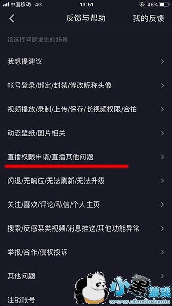 3、接着再进入【直播权限申请/直播其他问题】选项