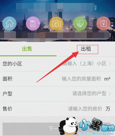 4、这个页面有两个功能出售和出租,我们只是发布出租房源,所以用手指点几下出租就可以了。